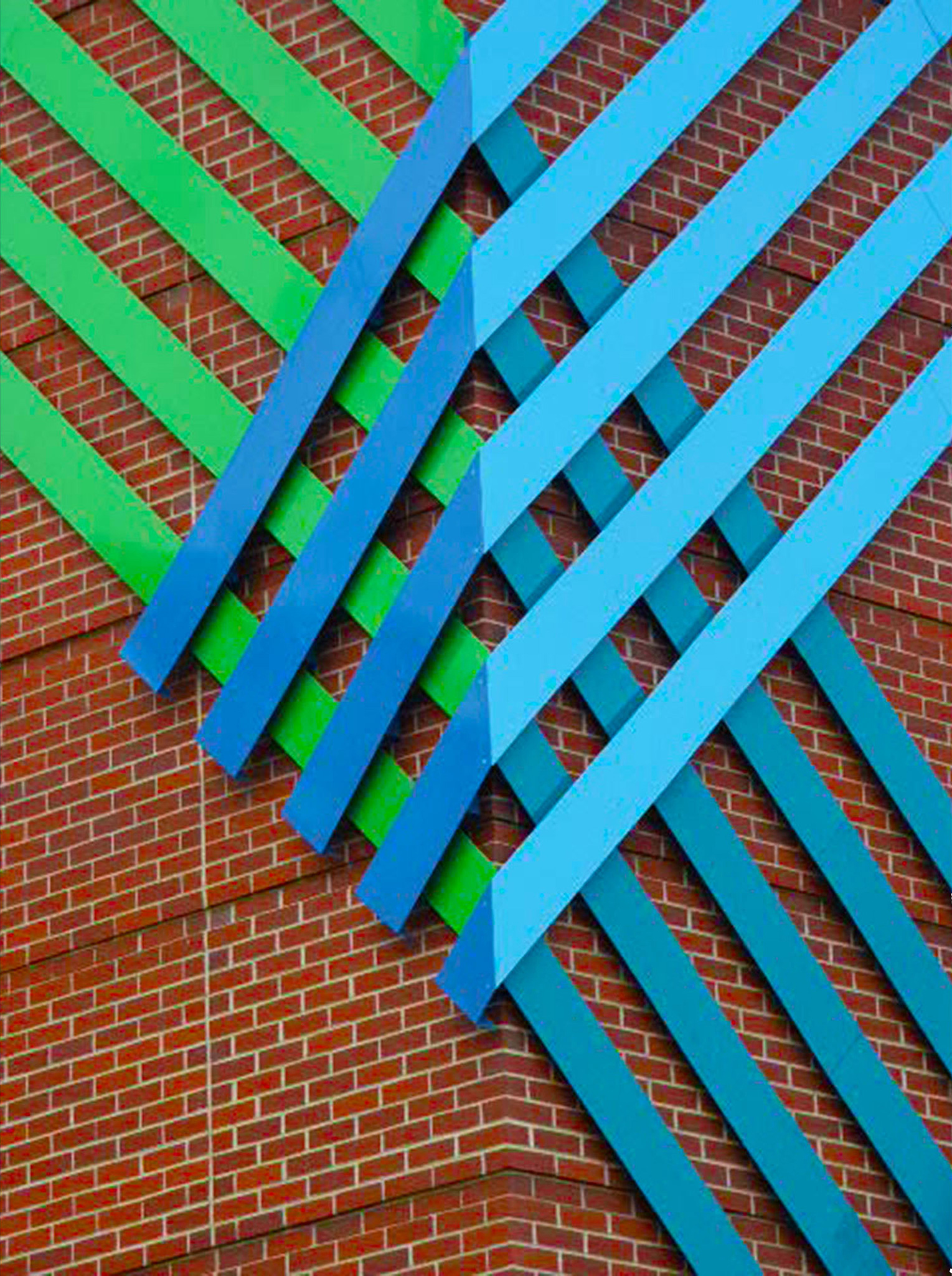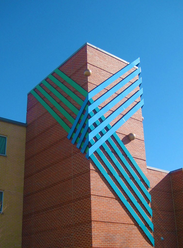 Aurora Wrap Police Station District OneSteel, Copper 36 feet by 32 feet by 20 feet The wall sculpture symbolizes the “safety net” that Aurora Police District One provides for the community.