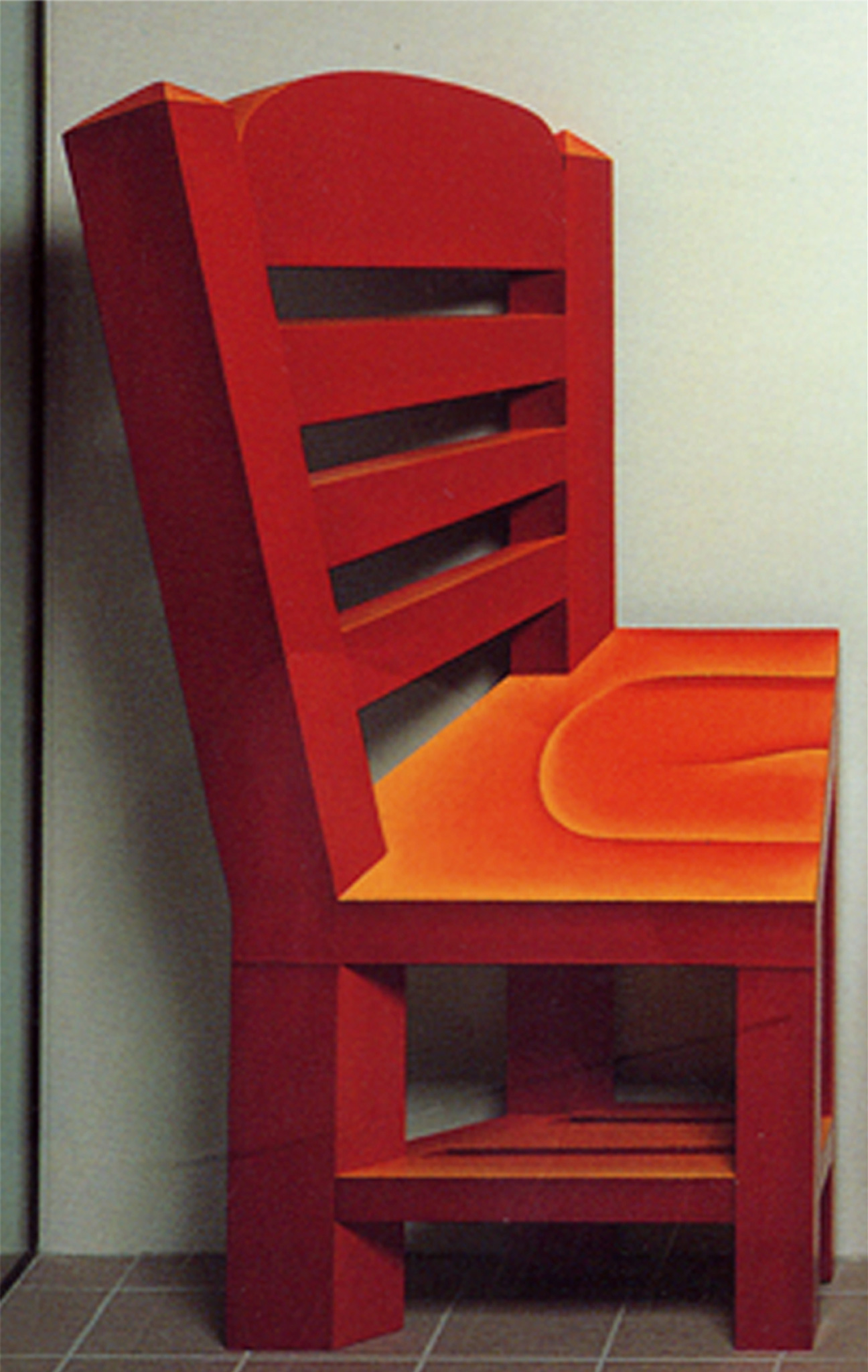 This installation in the foyer of the library suggests someone at a desk learning about universal tools of learning: Pi, an apple suggesting knowledge or computers, books, Euclid’s basic shapes and many more symbols. The chair is in a classic Western perspective while the screen is constructed in Byzantine perspective. On the opposite wall is a painting that mirrors the installation as if it were a fish eye lens, decoding some of the messages seen in the installation.